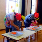 真剣なまなざしで慎重に切っていました。さすが年長さん!