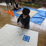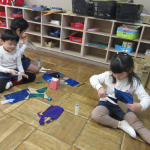 登園してくると、劇に必要なものをお友達と相談して作っています。