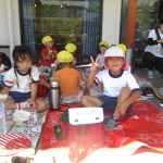 同じ年齢のお友達と一緒にだんじり会館を周ったり、お昼からは年長さんは同じチームの友達と一緒に