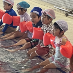年中さんは、「プール始めて!めっちゃ楽しい~!」と初めてのプールに大喜びでした!