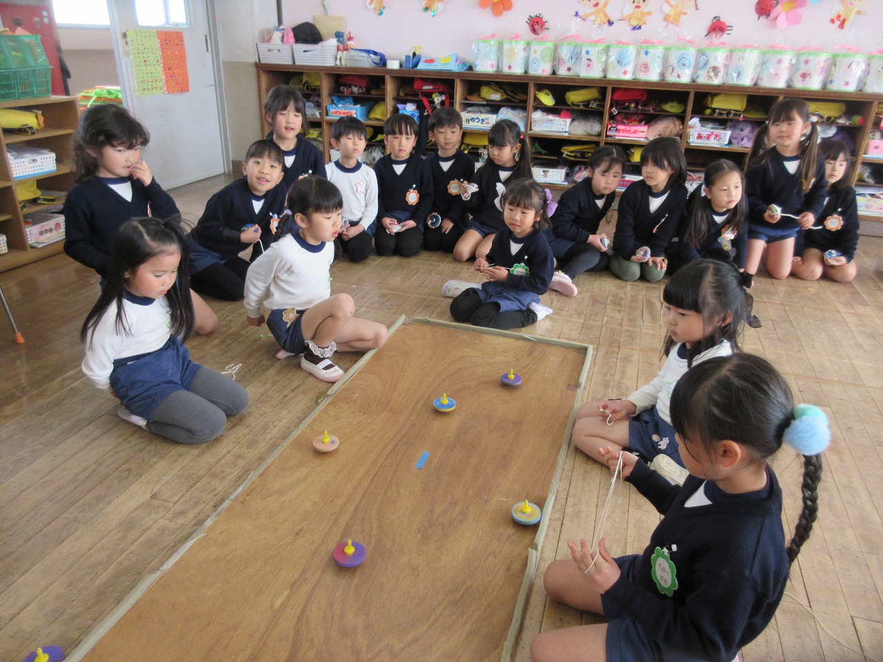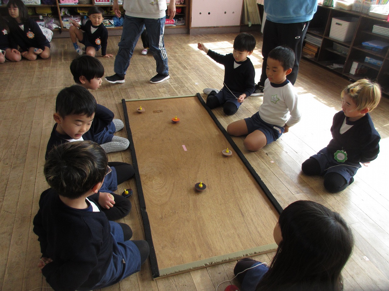 3/6(金)ほしぐみ、ちゅーりっぷぐみみんなでコマ回し大会を行いました。