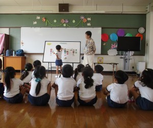 歌や絵本で【権利】について学びました。初めて聞く言葉でしたが、自分の好きなことを好きって言っていいんだよ、自分の思ったことを言っていいんだよ、それが【権利】なんだ、というお話をみんな真剣に聞いていました。