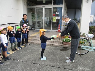 3/13、今年度最後は4歳児が作った4月のカレンダーを