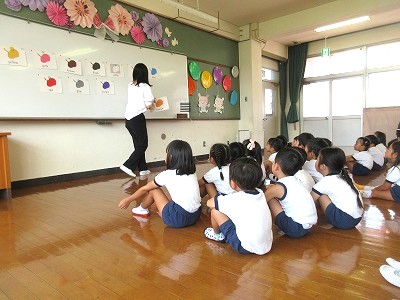 「これは何色かな?」と聞かれると、英語で答えている子もいました。