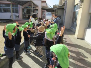 1/28(水)、春木幼稚園、春木保育所の4歳児のお友達がバスに乗って大芝幼稚園に遊びに来てくれました。