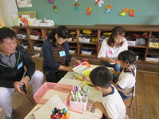 前半はおじいちゃん、おばあちゃんと好きな遊びを一緒にしました。