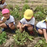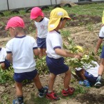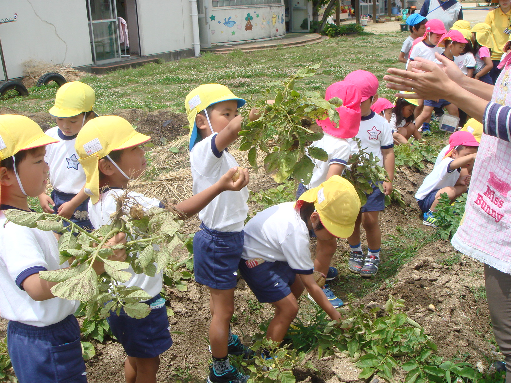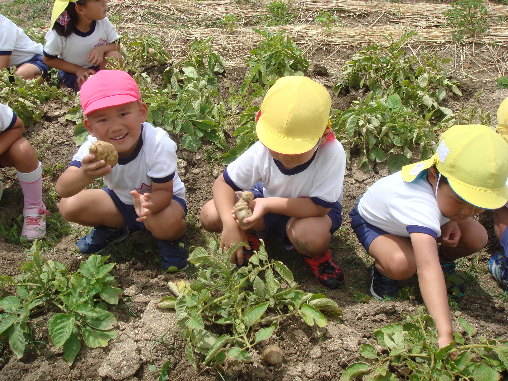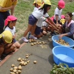 園庭で育てた「じゃがいも」を収穫しました!全部で238個、収穫できました!「いのち」の尊さを感じます。収穫した「玉ねぎ」「じゃがいも」などを使って、「カレー」を子ども達とクッキングして食べます!楽しみですね!