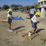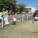 秋の自然を感じながら好きな遊びを楽しんでいます。虫探しやいろいろな遊具を組み合わせてのサーキットを自分たちで考えて試行錯誤しながら遊んでいます。