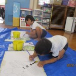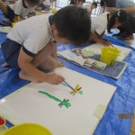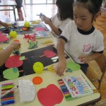 フレンドタイムでは、絵の具遊びや月間絵本、りんごやみかん制作を行いました。