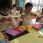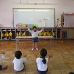 今日は、フレンドタイムをしました。お話広場では、みんなの前で自分の思いを話しています。自分の気持ちを言葉にして伝える大切さに気付いていってほしいと願っています。