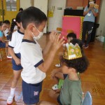 昨日は9月生まれの誕生会をしました。年長児がペープサートととんぼの劇をしてくれました。