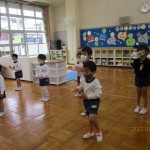 今日も元気に登園して来てくれた子ども達(^^♪好きな遊びを見つけて楽しむ姿が見られます。外で元気いっぱい遊んだ後は、室内で体操やリトミックをしました☆