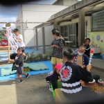 そして、午後からは5年生が遊びに来てくれてだんじりごっこを一緒にしてくれました。大迫力の5年生に負けじとついていこうとする頼もしい姿が見られ、驚かされました。