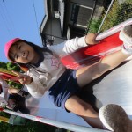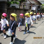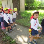 今日はお天気が良かったので、お散歩に・・・四角公園で遊びに行ってきました。鬼ごっこや、滑り台、お花摘みなど…たくさん遊んで大満足!!帰りはゆっくりペースでしたが、頑張って最後まで交通ルールを守って歩きました。