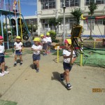 本日より幼稚園が再開し、元気な声が戻ってきました(*’▽’)風も一気に涼しくなり、秋の訪れに心地よさを感じながら久しぶりの再会を喜んでいました。気温の変化に体調を崩さないように、基本的な感染対策を心がけたいと思います。だんじりごっこや運動遊びを楽しみました。