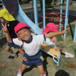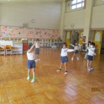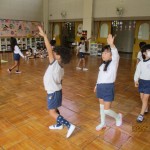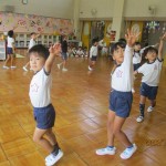 運動会に向けてダンスを頑張っています。年長児が引っ張ってピシッと決めてくれていました。本番が楽しみですね!!