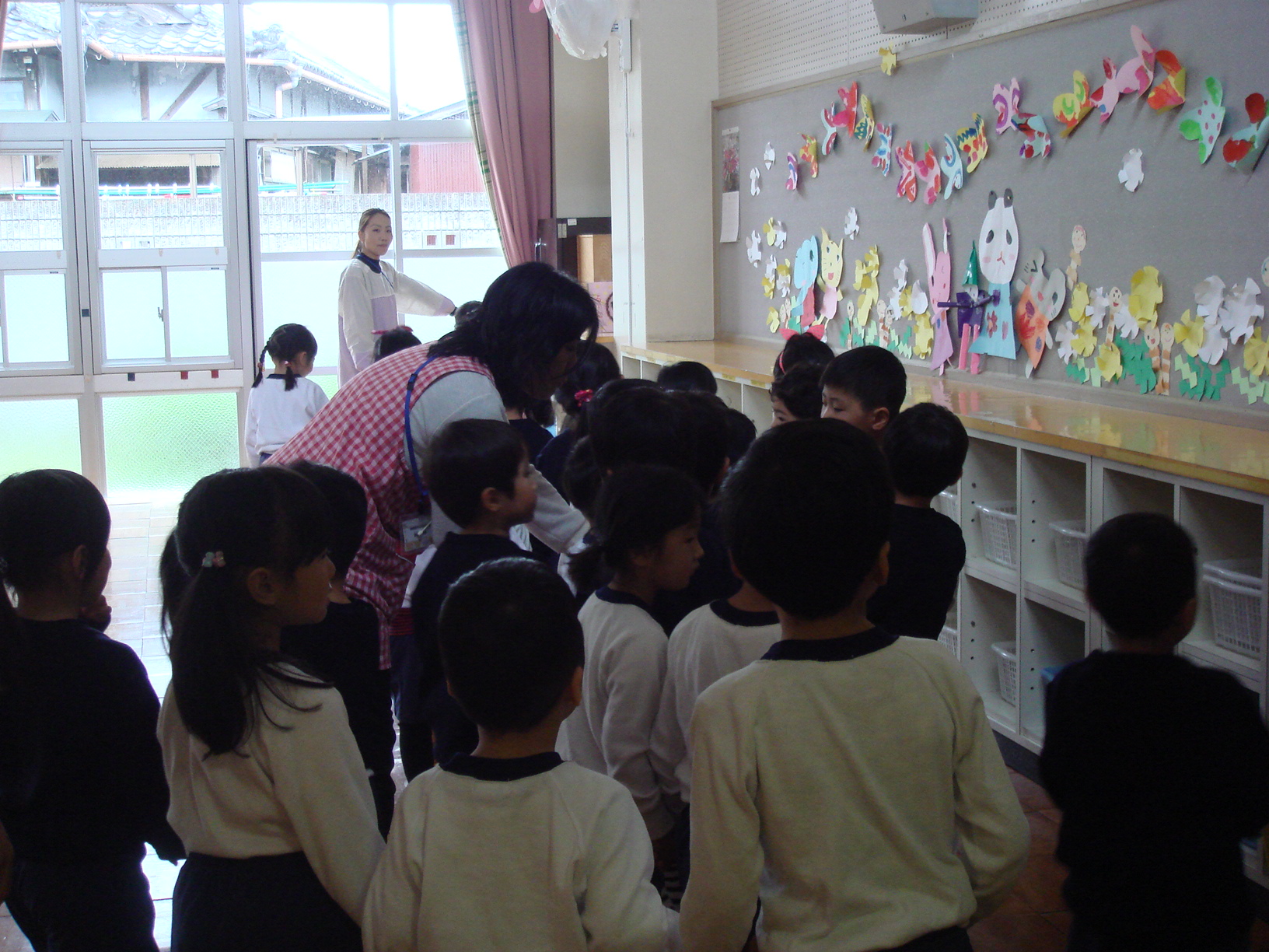 あいにくの天気でしたが、園舎内のいろいろな部屋を探検しました。この部屋がどんな時に使うのか、楽しみながら知っていきました!「園内めぐり、楽しかったわ!」の声が、子ども達から聞かれていました!