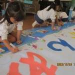 そして運動会に向けての横断幕作りもしました。ペンキやマジックを使ってとっても素敵な幕が出来上がりました(^_-)-☆