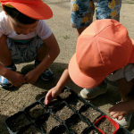 野菜の種もみんなで植えました。大きくなりますように!