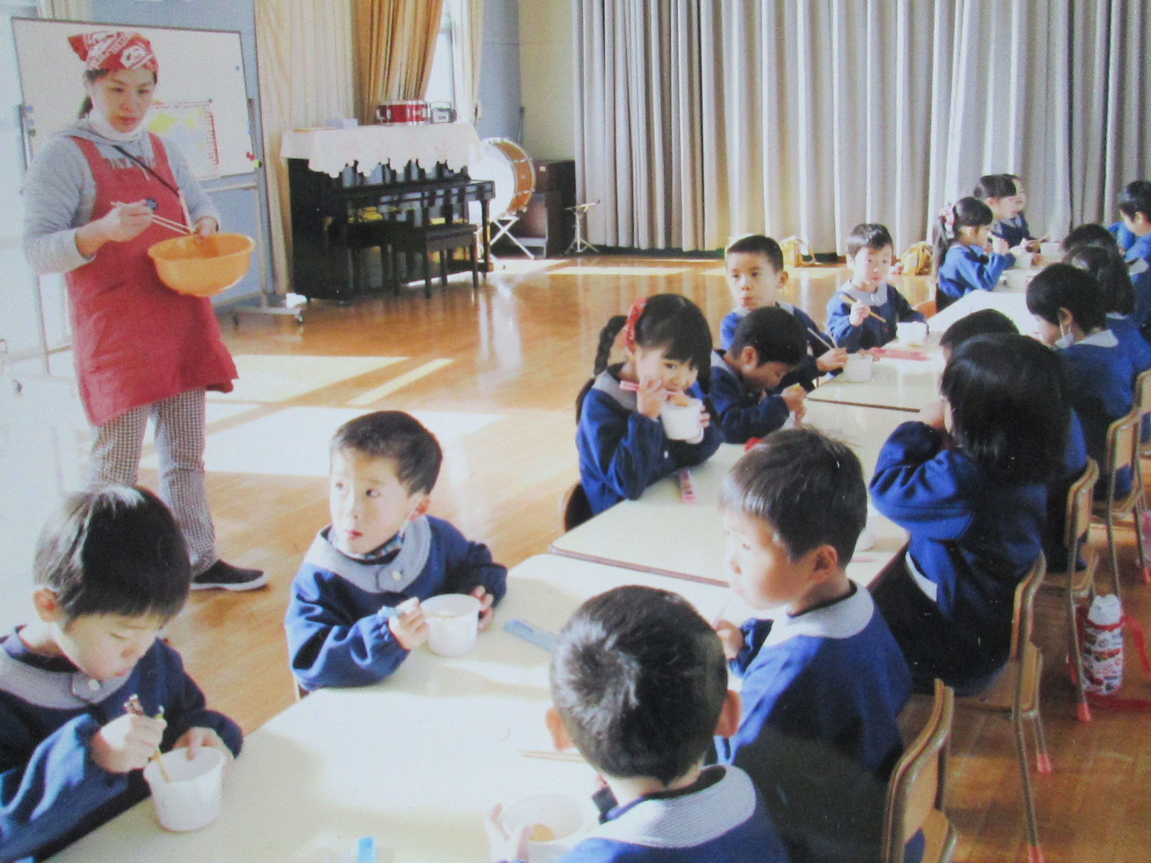 12月4日、地域の方や幼稚園委員のお母さん達、おじいちゃん、おばあちゃん、PTA実行委員の皆さま、たくさんの方にお手伝いしていただき、楽しいおもちつきをすることができました。