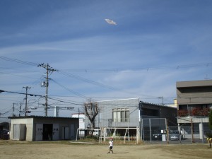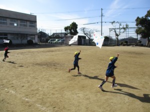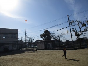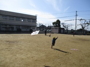 終わるころには、「きっと2階の教室の小学生も見えてるね!」「木に引っかかっちゃった!」というくらいみんな高く上げることが出来ました!