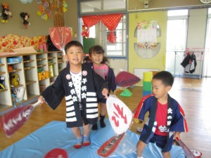 土生滝と湯のだんじり小屋に行かせてもらい、楽しいだんじり祭りが終わり、休み明け、幼稚園では、お祭りモード満開です。