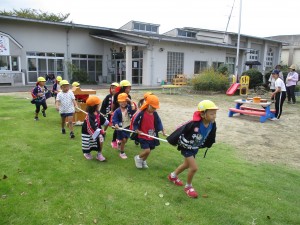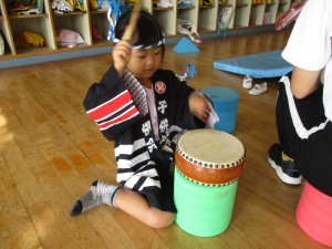 そーりゃーそーりゃーと、お祭りが終わっても園庭には、かけ声や鳴り物の音が響いています。