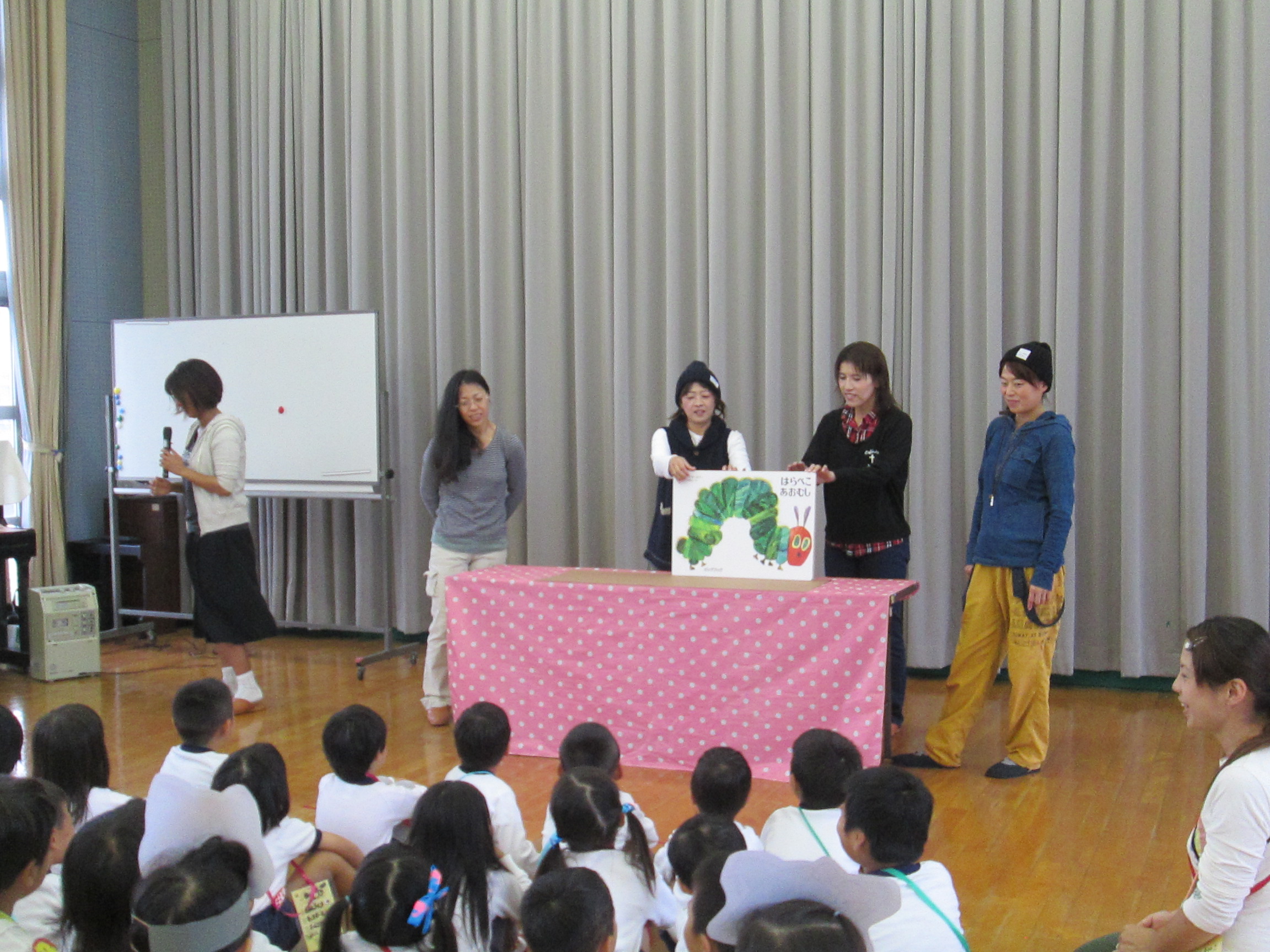 最後にお母さん達による「はらぺこあおむし」のお話を聞かせてもらい、楽しい一日を過ごしました。