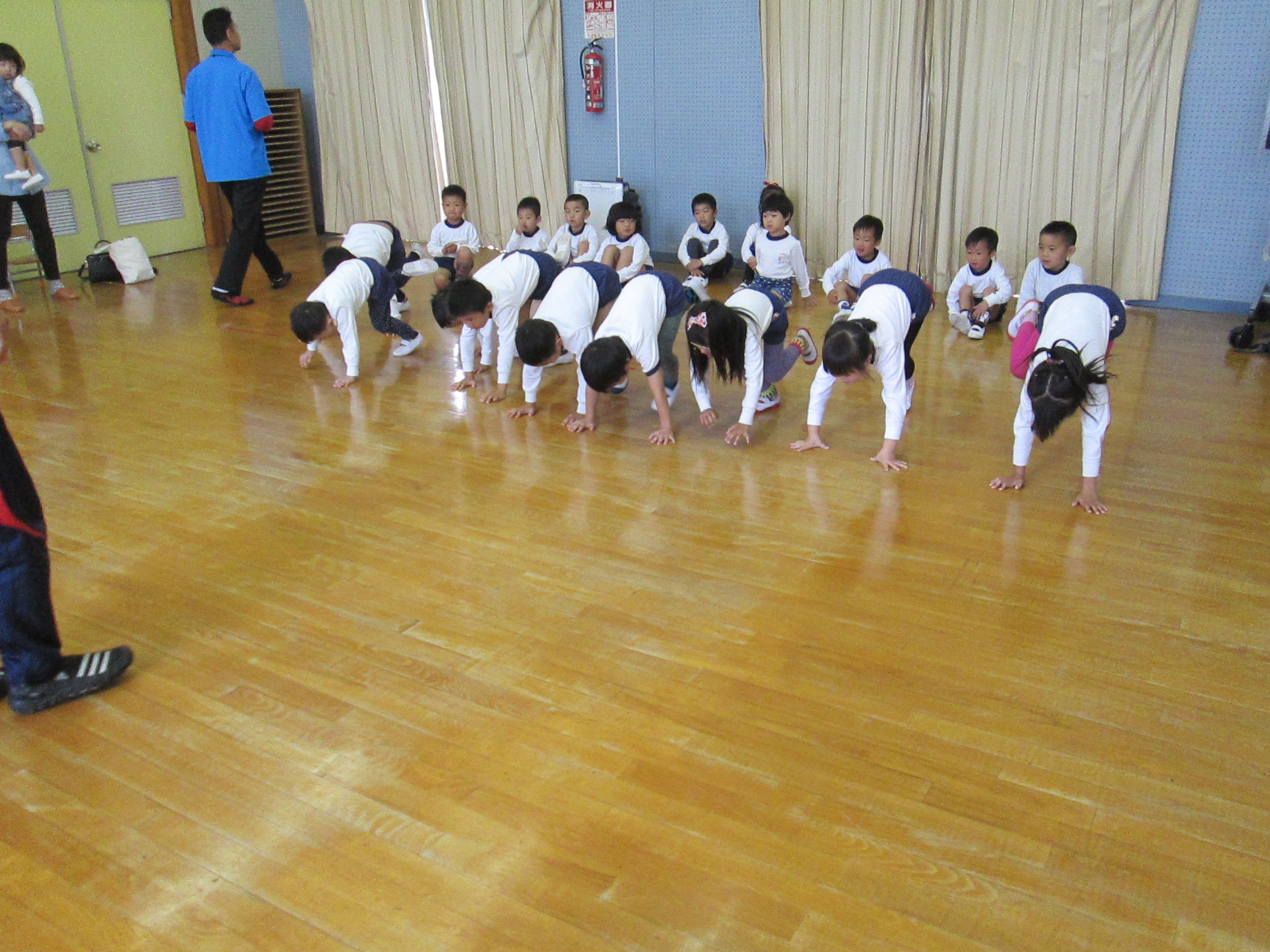 にっこりキッズの方に来ていただき、体操したり、鉄棒を教えていただきました。