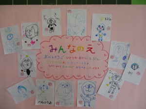 お弁当後のホッとした時間に、みんなで同じテーマの絵を描いています。