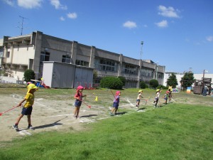心地のいい風が吹く中でダンス楽しんでいます!!年長さんだけの見せ場もあるかも?