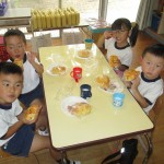 そこで、幼稚園でもみんなでパン給食の日を作ってみました。