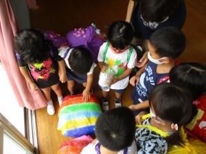 みんなでどんな味のアイスか相談したけどまとまらなくて、虹色レインボーアイスに決まったみたい!そして・・・
