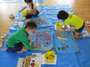 年長さんは『スイミー』年中さんは『りんごがひとつ』のお話の絵を描きました!!