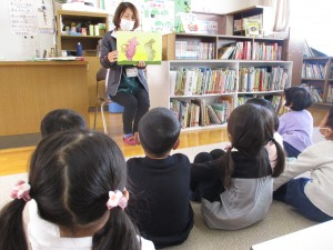 そして、今日は図書室で絵本読み聞かせの日でした。今日もたのしかったね!
