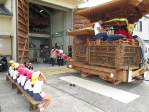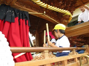 彫り物の真近でみて、「わぁ~すごい!きれい!」、また、前梃をさわって「太いなぁ~」と改めてだんじりの凄さを実感している様子でした!