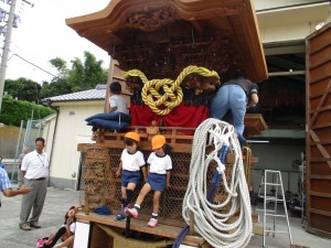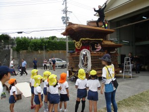 朝からたのしみに出かけました!だんじり小屋に着くと、もう町会長様はじめだんじり関係の皆様が、園児を
