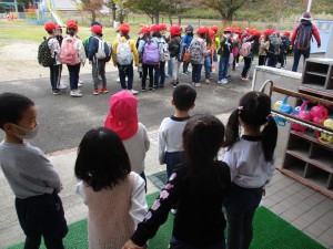 「めっちゃ楽しいで!」「いっぱいどんぐりみつけてきてな」「幼稚園があるけたんやからだいじょうぶやで!」