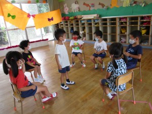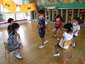 今日のミニゲームはフルーツバスケット!みんなルールを理解して楽しんでいました。