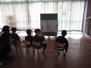 話す姿に変わってきました。どんなふうに自分が読み上げて、それをみている側がそんな風に楽しんでいるのか気になって、みんな、映画係をしたり、お客さんになったり、いったり来たりして楽しんでいました。