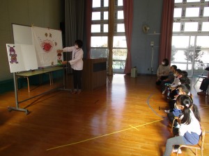 学びました。園児には、楽しくわかりやすく、パネルシアターでいろんな磨き方や、おやつは時間を決めてたべたりする大切さについて