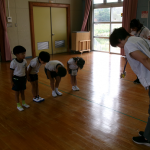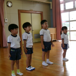 始業式では、園長先生と夏休みに過ごしたことや遊んだことを一人ずつ話をしました。