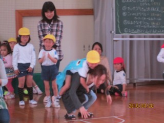 今年度はじめての保育参観!!おうちの人といっしょに体操をしたり、おんぶをしてもらってかけっこ