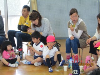 体を動かしたあとは、おんぶかけっこでゲットした柏餅券と柏餅を交換して、親子でおいしく柏餅をいただきました!!