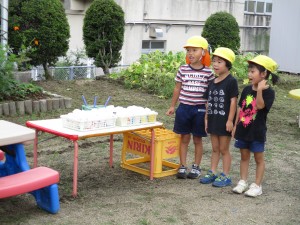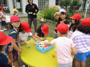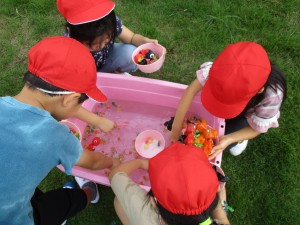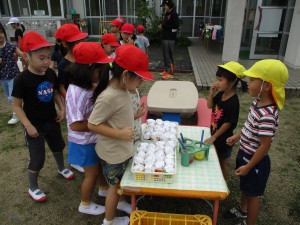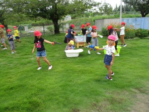 園児が夏祭りににたお店を今度はお店屋さんになったり、積極的に経験を生かして楽しんでいました。