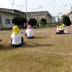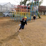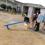 その後は、毎回楽しみにしているサーキット遊びです!ジグザグコースを走ったり、芝生の山を登ったり下ったり、また平均台や跳び箱、マットやフープなどいろいろな用具を使った多様な動きのある遊びに挑戦したり、こどもたちは夢中になって遊びました。アッという間に子どもたちの体はぽかぽかになり、セーターを脱いで遊ぶ姿もありました。たっぷり遊んだ後は、リラックスして柔軟体操を行い、体をほぐしました。いつも以上に運動量がアップし、様々な動きの獲得や身のこなしにつながっていました。心情面においても、「楽しい!」「やってみたい!」「諦めずに挑戦する!」などの気持ちを味わっている姿がたくさん見られました。これからも子どもたちの姿や頑張りを認めたり、気持ちに寄り添いながら、援助していきたいと思います。