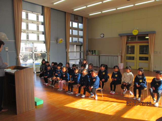 2学期いろいろなことがありました。園長先生と振り返りながら、みんなで思い出しました。一人一人に園長先生から賞状も頂き、名前を呼ばれると大きな声で返事していました!
