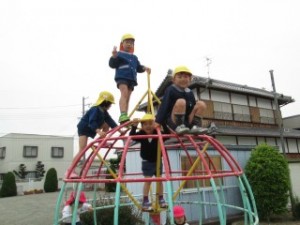 幼稚園とはまた違う遊具にうきうきだったよ!!高いところも平気だよ!