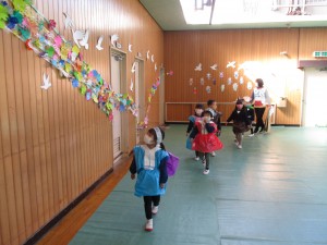 さぁトップバッターの幼稚園の番です。作品をみながら前に進みます。
