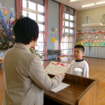 今日はそんな1年間で大きくなった子どもたちに園長先生から修業証書をいただきました。